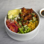 Base + Nabo dulce + maiz dulce + encurtido de la casa +aguacate + ajonjoli + pollo coreano picante + cebollino