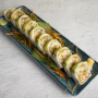Cobertura de aguacate con salsa de anguila , relleno de pescado empanizado , camarón tempura , cebollino , kanikama y queso crema