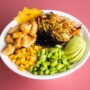 Base a elegir + pollo a la naranja + edamames + maiz + yasaitame + aguacate + nori